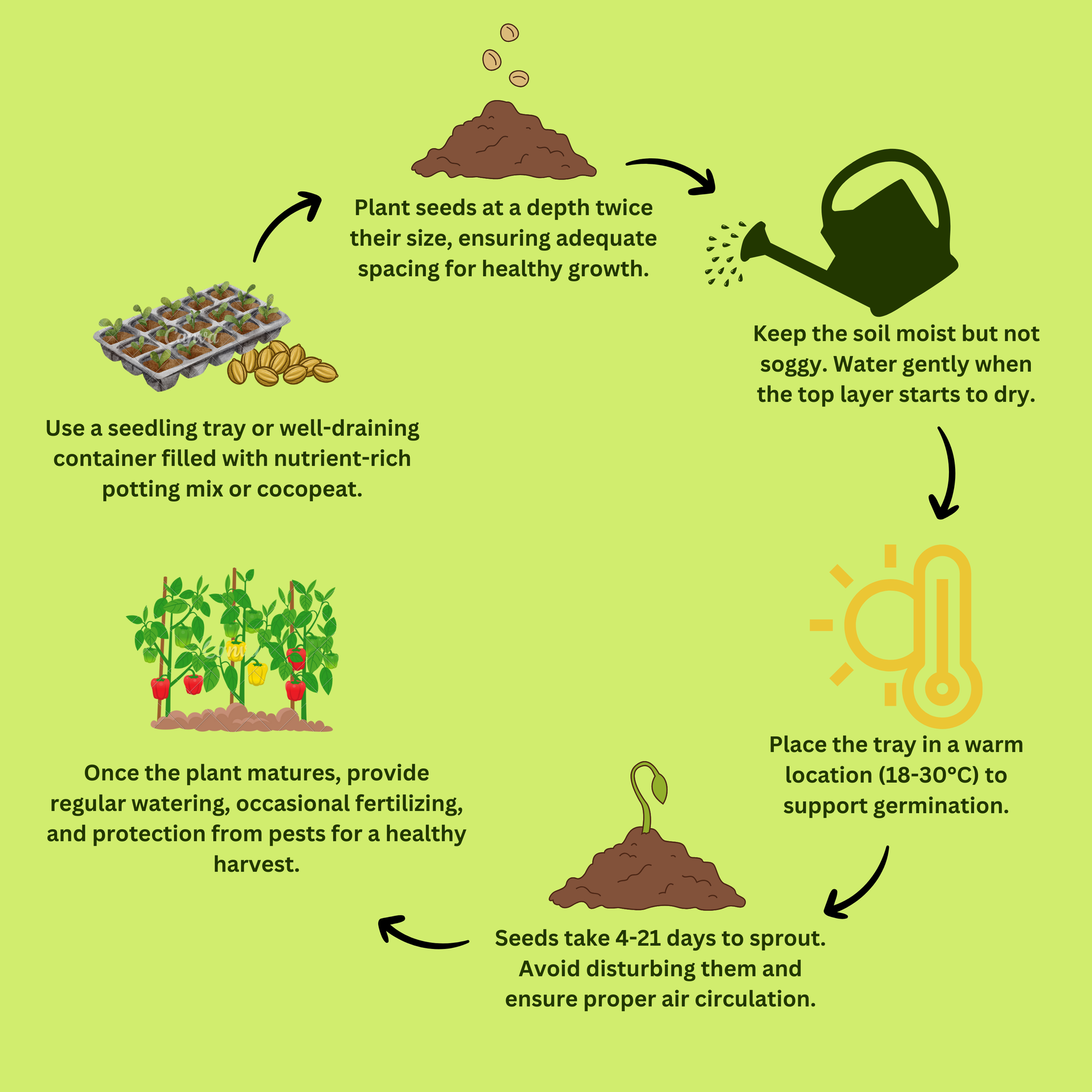 - Seeds typically germinate within 7-14 days in warm conditions.